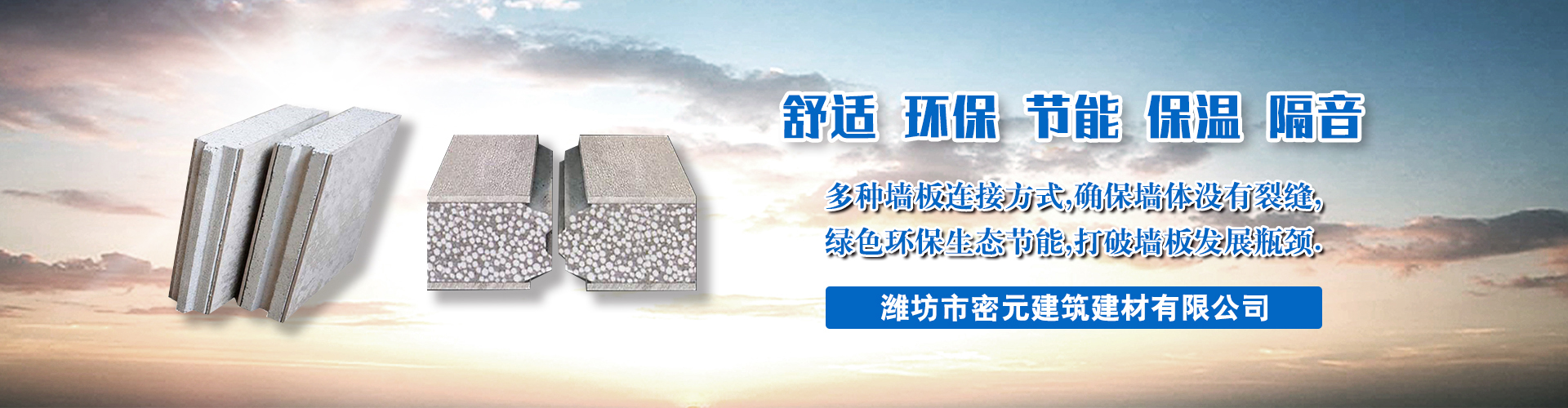 濰坊市密元建筑建材有限公司是一家高科技、綠色環保、節能降耗、致力于生態環境的墻體材料專業公司。公司專業生產暢銷煙臺等地的防火墻板,隔音墻板,FPB輕質墻板,FPB輕質隔墻板,ACC輕質墻板,ACC復合墻板,ACC隔墻板等墻體材料。公司位于諸城市開發區舜王工業園內,地理條件優越,交通十分便利。…